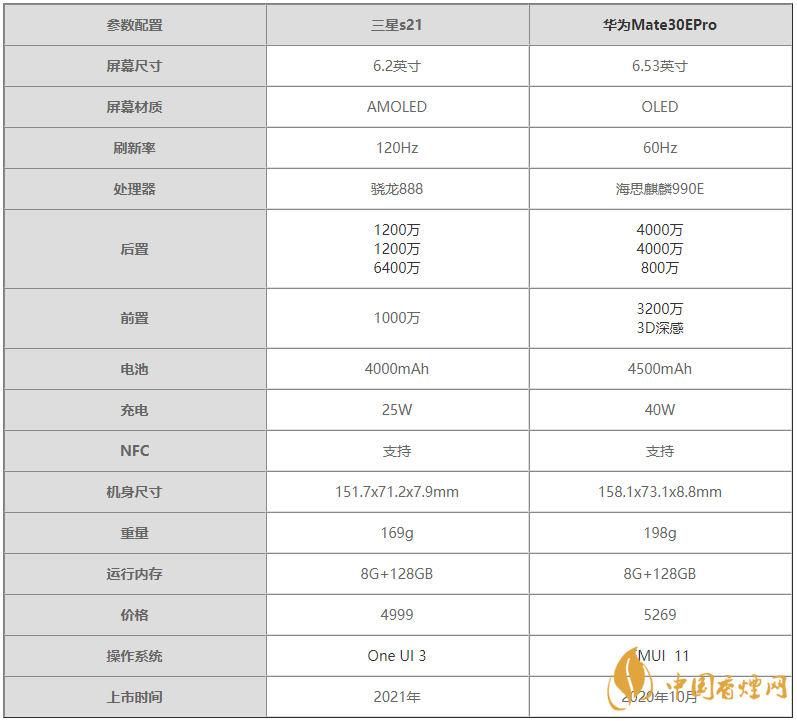 三星s21手機已經(jīng)正式發(fā)布啦,相信有不少小伙伴們都非常關(guān)注三星s21手機,那么三星s21和華為Mate30EPro有什么區(qū)別?哪款手機更好?下面香煙網(wǎng)小編為大家介紹一下關(guān)于三星s21和華為Mate30EPro的詳細(xì)對比,一起來看看吧!