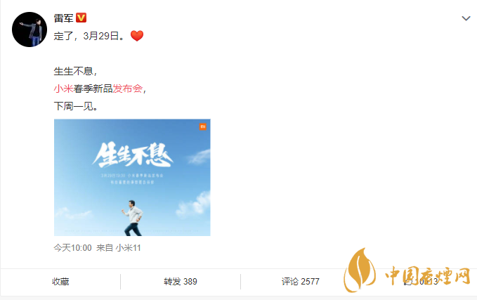 生生不息:小米春季新品發(fā)布會,3月29日見。