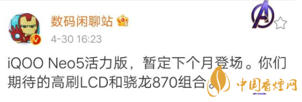以上是小編整理的有關(guān)iQOONeo5活力版參數(shù)配置的最新信息,相信在座的朋友們聽到小編的介紹有所認(rèn)識,但是小編在這里提醒一句還是要根據(jù)自身情況考慮哦,更多最新最實用的資訊請持續(xù)關(guān)注香煙網(wǎng)。