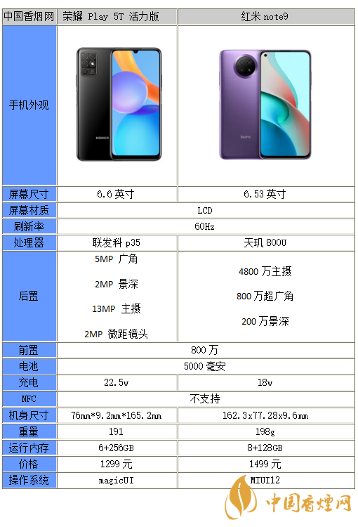 以上就是小編收集到的榮耀plya5t活力版和紅米note9區(qū)別在哪-性能分析-哪個更值得買的相關(guān)內(nèi)容,以上內(nèi)容均來源于網(wǎng)絡(luò),僅供參考,一切以實際為準,更多最新數(shù)碼資訊請關(guān)注香煙網(wǎng)。
