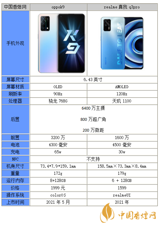 以上就是小編收集到的OPPOK9和真我Q3Pro哪個好-OPPOK9和真我Q3Pro參數(shù)對比的相關內(nèi)容,以上內(nèi)容均來源于網(wǎng)絡,僅供參考,一切以實際為準,更多最新數(shù)碼資訊請關注香煙網(wǎng)。
