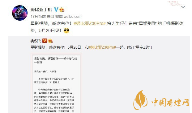 中興通訊終端業(yè)務部總裁兼努比亞技術有限公司總裁倪飛發(fā)布了“致牛仔的信”,正式宣布努比亞Z30 Pro將于5月20日發(fā)布,下面跟著小編來一起了解一下吧。