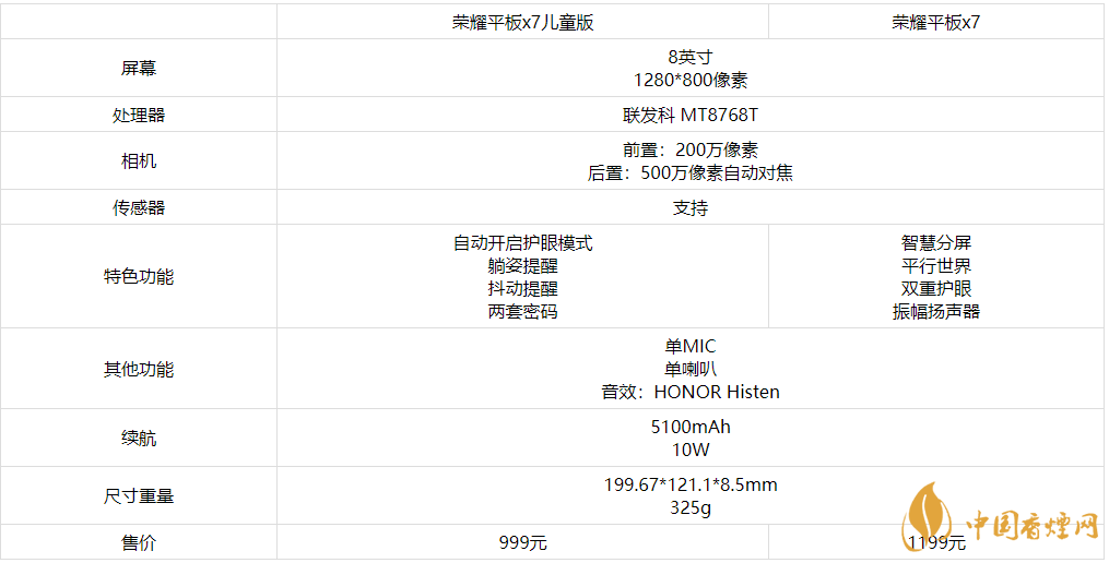 以上是小編整理的有關(guān)榮耀平板x7兒童版和普通版參數(shù)對(duì)比-哪個(gè)更好的信息,相信在座的朋友們聽到小編的介紹有所認(rèn)識(shí),但是小編在這里提醒一句以上信息整合于網(wǎng)絡(luò),更多最新最實(shí)用的資訊請(qǐng)持續(xù)關(guān)注香煙網(wǎng)。