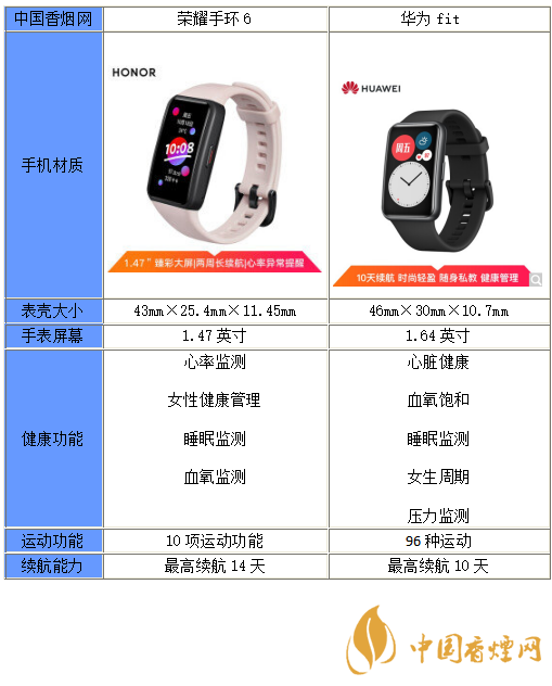 以上就是小編收集到的華為fit和榮耀手環(huán)6區(qū)別在哪-華為fit和榮耀手環(huán)6對比分析的相關內(nèi)容,以上內(nèi)容均來源于網(wǎng)絡,僅供參考,一切以實際為準,更多最新數(shù)碼資訊請關注香煙網(wǎng)。