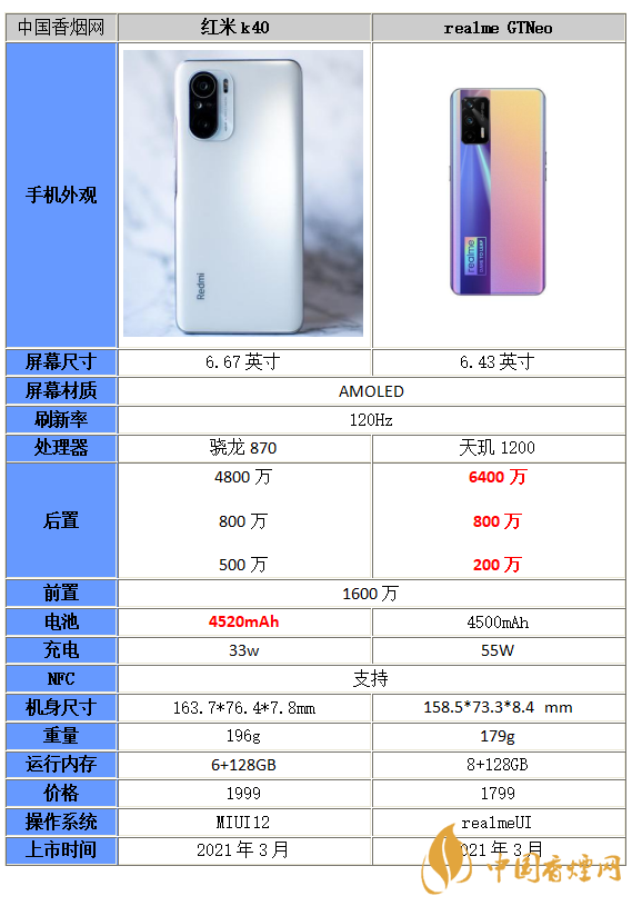 以上就是小編收集到的真我GTneo和紅米K40差別在哪-真我GTneo和紅米K40參數(shù)性能對(duì)比的相關(guān)內(nèi)容,以上內(nèi)容均來(lái)源于網(wǎng)絡(luò),僅供參考,一切以實(shí)際為準(zhǔn),更多最新數(shù)碼資訊請(qǐng)關(guān)注香煙網(wǎng)。