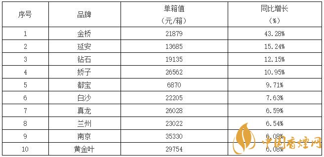 重點卷煙品牌2017年單箱前10排序表