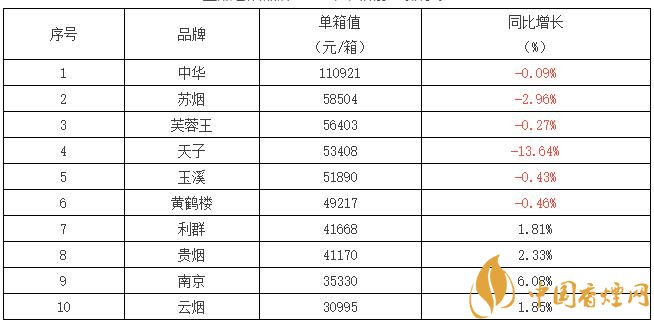 重點卷煙品牌2017年結(jié)構(gòu)增長率前10排序表