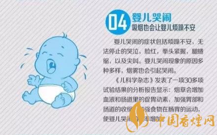 《兒科學(xué)雜志》發(fā)表了一項(xiàng)30多項(xiàng)試驗(yàn)結(jié)果的分析報(bào)告顯示:煙草會(huì)增加血液和腸道里的促胃動(dòng)素,加強(qiáng)胃8部和腸道的收縮,加強(qiáng)食物在腸胃的運(yùn)動(dòng),使嬰兒哭鬧的概率增加。
