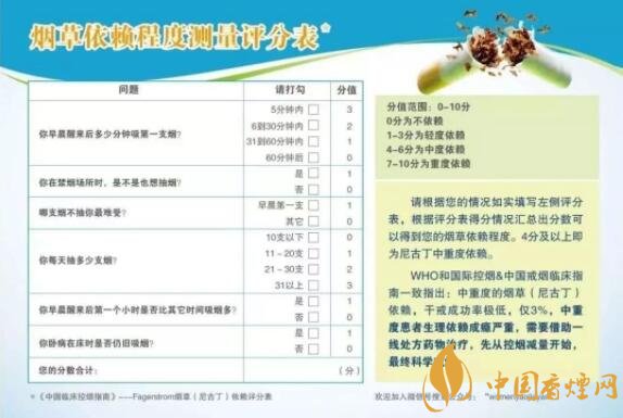 煙草成癮即尼古丁成癮,是國(guó)際衛(wèi)生組織公認(rèn)的一項(xiàng)疾病,需要用科學(xué)的方法戒煙,才能達(dá)到最好的戒煙效果。在戒煙前,煙民朋友應(yīng)充分了解自身情況。可根據(jù)上方的《煙草依賴程度評(píng)分表》,對(duì)自己的煙癮水平進(jìn)行一個(gè)評(píng)估。0-3分為輕度煙草依賴,4-6分為中度煙草依賴,7分以上為重度依賴。超過(guò)4分的煙民朋友們,已經(jīng)為中重度煙草依賴患者。對(duì)于這類(lèi)煙民朋友,“干戒”成功率極低,僅為3%,建議去正規(guī)醫(yī)院的戒煙門(mén)診,用藥物治療的方法來(lái)幫助擺脫煙草依賴,減少戒斷反應(yīng),降低痛苦,用科學(xué)的方法盡早戒煙。