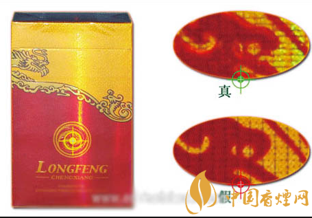 2、圖案印刷:包背面的龍圖案眼睛處,真煙的龍眼圈有明顯的凹凸感,假煙龍眼圈沒有凹凸感。