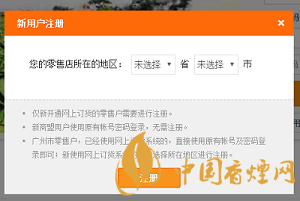 若新用戶則需注冊(cè),選擇所在地區(qū)后點(diǎn)擊“注冊(cè)”