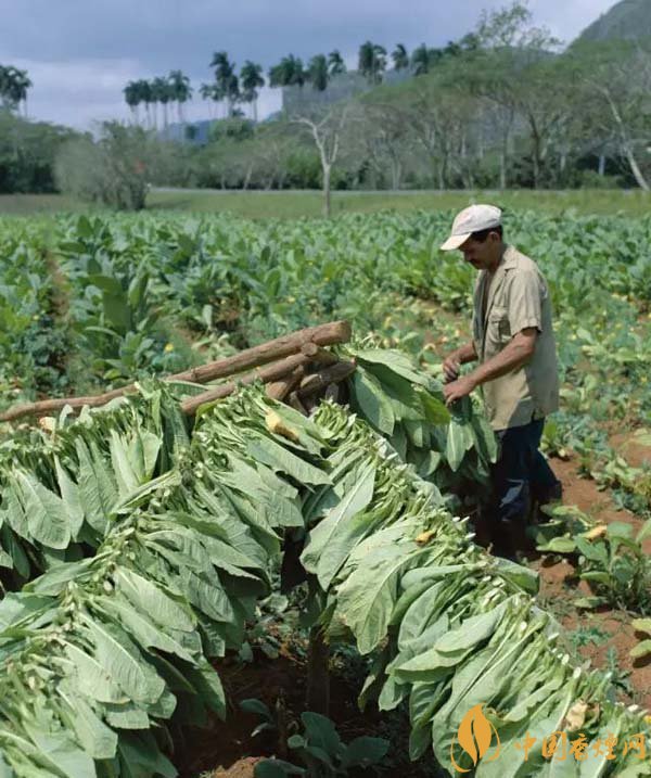 之所以綠斑在古巴雪茄上經(jīng)??梢?jiàn)是因?yàn)楣虐脱┣训闹圃爝^(guò)程中,有吊干(curing)這一環(huán),在煙葉收成以后,為了要除去多余的水份,農(nóng)夫們會(huì)把一雙一雙的煙葉用針線(xiàn)穿起,然后在倉(cāng)庫(kù)中吊制。