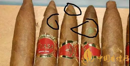 其他非古巴地區(qū)的雪茄茄衣,大部份都是采用Connecticut方法,在煙葉的外表涂上化學(xué)添加劑,然后放進(jìn)機(jī)器里焗干,這種方法可以節(jié)省制干時(shí)間,也避免綠葉素在轉(zhuǎn)化成葉黃素的時(shí)候不完全。因此,多米尼加、洪都拉斯等生產(chǎn)的品牌雪茄茄衣中小綠斑比較少見(jiàn),但這樣做,茄衣的顏色及干濕度就可以很一致,但是味道和質(zhì)感卻失真,而且,這種方法造出來(lái)的雪茄,馀韻都隱約有點(diǎn)兒苦澀。 因此,古巴雪茄中的小綠斑,也可以彰顯古巴純天然無(wú)添加劑的特性。