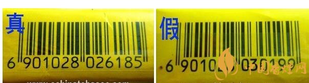 真品小盒條形碼字體和條形碼邊緣均為明顯的鋸齒狀,字體較細(xì)?。患贌焺t無(wú)真品特征,而且字體較粗。