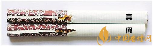 真煙采用機器燙封一次成型,封口較平整,拉線頭為規(guī)則的半橢圓形,右側(cè)垃圾桶圖示上方“方塊”筆畫較粗;假煙一般采用手工電烙鐵燙封,封口起皺較大,拉線頭形狀不規(guī)則,右側(cè)垃圾桶圖示上方“方塊”筆畫較細(xì)。