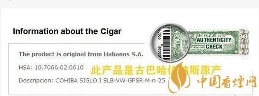 這個(gè)防偽標(biāo)簽永遠(yuǎn)是放在盒子正面的左下角,側(cè)面的的左上角。登陸古巴Hababos官網(wǎng),可以看到條碼查詢(xún)?nèi)肟?,輸入條碼編號(hào)可以查到這樣的結(jié)果:
