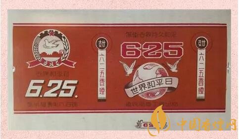 “625”牌卷煙 1950年6月25日,朝鮮半島爆發(fā)了大規(guī)模的戰(zhàn)爭(zhēng)。河南惠民煙廠據(jù)此出品了煙標(biāo),以警示人們珍惜和平。煙標(biāo)上畫(huà)有和平鴿,并寫(xiě)有“世界和平日”,非常醒目。