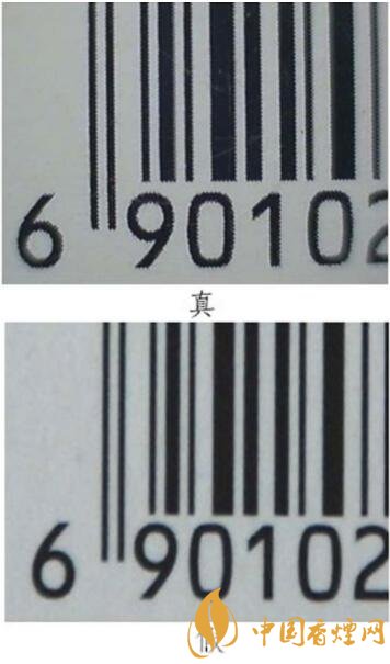 真煙條盒條形碼字體邊緣呈鋸齒狀,假煙條盒條形碼字體邊緣光滑。
