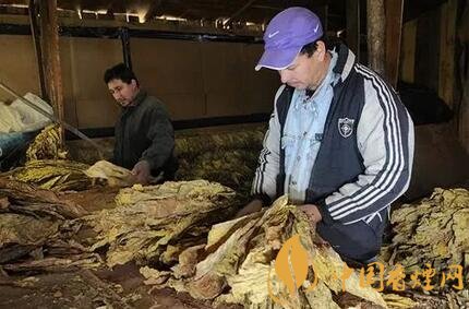 茄衣所采用的煙葉按生產(chǎn)條件一般分為陰植葉和陽(yáng)植葉。不管是哪一類(lèi),茄衣煙葉在收成后一般以50葉為一束捆版,然后送往種植園中專(zhuān)用的茄衣倉(cāng)庫(kù)進(jìn)入干燥程序。這是第一道工序,茄衣束被掛在倉(cāng)庫(kù)高處的木桿上,這個(gè)過(guò)程需很小心地控制溫度和濕度。這道工序是為了使葉片中的葉綠素轉(zhuǎn)化為葉紅素,一般情況下約需一至兩個(gè)月時(shí)間。