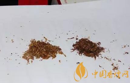 假煙: 煙絲由于加工工藝簡陋,煙絲的油潤差,煙絲色澤暗淡;附加香較重。梗簽、煙末多,故吸食時有較強烈的刺激性,口感殘留多,燃燒煙圈較黑。