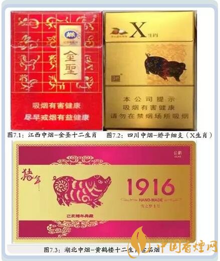 步入21世紀(jì),還有一些中煙公司以十二生肖為主題推出了幾款與“豬”有關(guān)的煙標(biāo),如江西中煙生產(chǎn)了一款金圣十二生肖,其煙標(biāo)圖案上就有一幅小金豬的圖案;四川中煙生產(chǎn)了嬌子(X生肖)煙標(biāo),其中一款印有一只形象可人的小花豬圖案;湖北中煙生產(chǎn)了一款雪茄煙黃鶴樓十二生肖1916煙標(biāo),其煙標(biāo)圖案上有一只豬卷著小尾巴,嘴巴向上似乎很滿足的朝天哼唱的圖案。