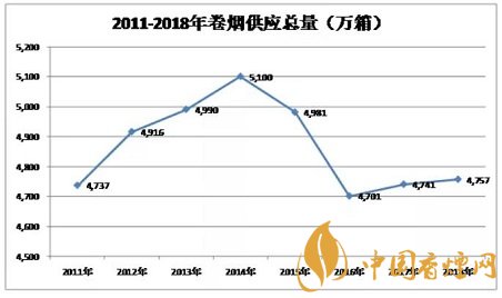 2018年,全國(guó)卷煙總銷量為4757萬(wàn)箱,已經(jīng)超過了2011年卷煙供應(yīng)總量(4737萬(wàn)箱)。但是,其中細(xì)支卷煙銷售203萬(wàn)箱,按1/1.5粗細(xì)換算后,相當(dāng)于行業(yè)向市場(chǎng)供應(yīng)了4641萬(wàn)箱常規(guī)卷煙。這就遠(yuǎn)遠(yuǎn)小于2011年的行業(yè)卷煙供應(yīng)總量了。