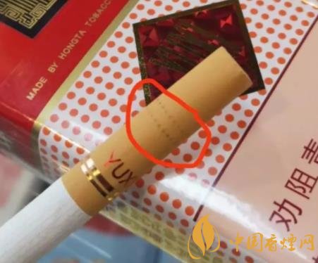 5、香煙過濾嘴上有很小的激光打孔,一般不易看見,可點燃后吸入一口煙后,用手指緊夾煙支中部,然后向煙支反吹吸入的煙氣,會留下均勻的細(xì)密孔眼。假玉溪的過濾嘴上有的沒有激光打孔,有的偽造了激光打孔,但做工粗糙,大小不一。