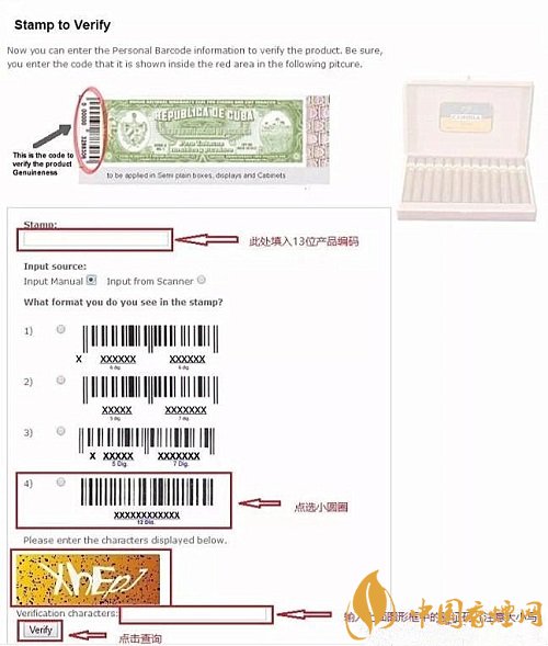 很多茄友都知道每盒古巴雪茄外盒上都有防偽條碼,從2009年第八代防偽標(biāo)開始古巴哈伯納斯煙草公司就開始增加了13位產(chǎn)品編碼,每個封條上都有一個單獨的條形碼,以便茄客跟蹤從雪茄生產(chǎn)到世界上每一個哈瓦那獨家經(jīng)銷商銷售的每一盒雪茄產(chǎn)品。可以通過古巴哈伯納斯官網(wǎng)進行產(chǎn)品真?zhèn)尾樵兞恕?/p>