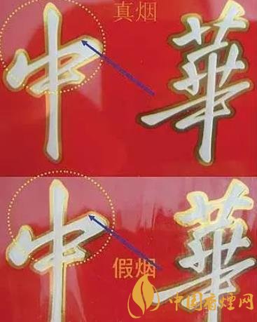 3、通過新版“中華”商標(biāo)紙印刷工藝來辨別。真煙燙金準(zhǔn)確,金鑲白“中華”字樣套色清晰準(zhǔn)確,層次分明;假煙印刷比較粗糙,金色邊緣多處出現(xiàn)缺色少漆現(xiàn)象,沒有層次感,主次色調(diào)也不突出。