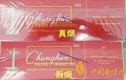 1、條盒正面“中華”兩字及天安門商標(biāo)紙印刷是辨別真假的重點(diǎn),真煙與假煙有明顯的區(qū)別。