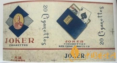 二十世紀四十年代,鴻順煙廠出品了“JOKER”卷煙,即“捷克”卷煙,此“捷克”非彼捷克(捷克斯洛伐克)。捷克煙標只是“JOKER”的直譯音,而“JOKER”英意譯為“小丑”,也就是撲克牌中的百搭,大小怪,與捷克國家毫不相干。煙標正版上橢圓形框,似覆在菱形花紋撲克牌的背面上,其內為一個中世紀衛(wèi)士的肖像,并不是小丑的相貌。副版上畫有一個傾斜的藍色紙牌套子,套內呼之欲出一些撲克牌,面上兩張分別是黑桃“A”和紅桃“K”牌面,即一副撲克牌中牌面點數(shù)的最大數(shù)和最小數(shù)。而在橋牌中,撲克牌“A”確是最大的。當然,不同的撲克牌游戲,有其不同的游戲規(guī)則。鴻順煙廠設計“捷克”煙標,取百搭大小王及其這兩張牌面作為煙標的主角,自有他的設計理念和商業(yè)用意,或許迎合當時人們的喜好,或是市場競爭的需要,在此,看者只能揣摩,不加定論。