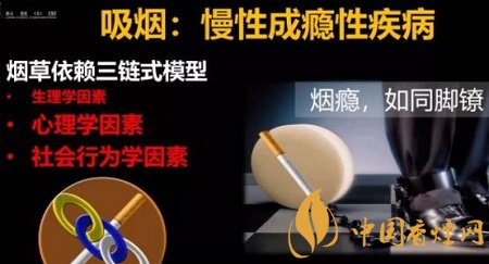 但是煙草成癮不是單單只有生理學(xué)因素,不然,中國就不會(huì)有3億吸煙者,不會(huì)十年吸煙率幾乎沒有變化。實(shí)際上,在戒煙的過程中,比克服生理學(xué)因素更難的是心理學(xué)因素和社會(huì)行為學(xué)因素。煙癮如同腳鐐,拴在人身上很難擺脫。
