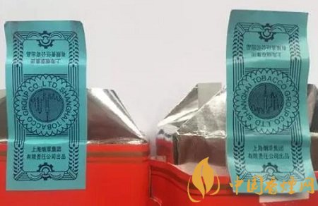 真品卷煙的封簽紙印刷清晰、細(xì)膩,中間的東方明珠塔尖指向正面;假煙封簽紙印刷模糊、粗糙,中間的東方明珠塔尖指向背面。