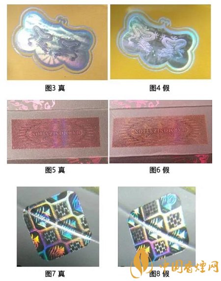 為了防范不法分子假冒而損害企業(yè)、消費(fèi)者利益,卷煙生產(chǎn)企業(yè)采取了各種防偽技術(shù),并利用防偽技術(shù)來打擊假冒偽劣,整頓和規(guī)范市場,提升企業(yè)及其產(chǎn)品形象,是一種展示企業(yè)對消費(fèi)者、對社會負(fù)責(zé)任的必須手段。卷煙防偽技術(shù)是綜合應(yīng)用現(xiàn)代科學(xué)理論與技術(shù),在產(chǎn)品的商標(biāo)標(biāo)識上制作具有高科技含量的圖案或信息,達(dá)到難以仿制的目的。目前卷煙行業(yè)應(yīng)用較多的防偽技術(shù)有激光全息防偽、彩色纖維、微縮印刷、變色油墨、超線防偽等等,且多種防偽技術(shù)結(jié)合應(yīng)用,科技含量高,制作工藝復(fù)雜,假冒煙極難仿制。早期偽造的防偽標(biāo)志粗糙容易識別,近些年,有些不法分子利用煙草行業(yè)防范疏漏,套取企業(yè)機(jī)密,部分假煙防偽制作逼真,難以確認(rèn)。例1:云煙(軟大重九)激光全息防偽,不同的角度呈現(xiàn)立體雕刻的雙龍、深度云層背景與動態(tài)光芒交替變換的效果(圖3),圖4假煙雙龍立體感也非常好;例2:白沙(和天下)超細(xì)線防偽,運(yùn)用線條進(jìn)行防偽,有豐富的曲線、粗細(xì)、陰陽線等變化,圖5、圖6真假難辨;例3:利群(新版)菱形圓角激光全息防偽標(biāo)志,標(biāo)志內(nèi)有廠徽及梅花圖案,在不同的角度擺動可見方形、橢圓形等多種幾何圖案,石塔下面有微縮防偽(廠長簽名),圖7、圖8亦是真假難辨。
