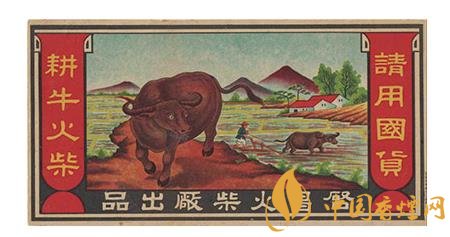 上世紀(jì)30年代,啟昌火柴廠出品的“耕牛”(圖1)火花,就描繪了一幅美麗的山村春耕圖:在數(shù)棵綠油油的樹(shù)木點(diǎn)綴下,幾戶農(nóng)家散落分布于山腳前的農(nóng)田里,一位頭戴斗笠的農(nóng)夫正扶犁驅(qū)牛耕田,近處則是一頭碩大的水牛目視前方的形象。