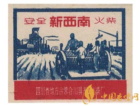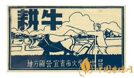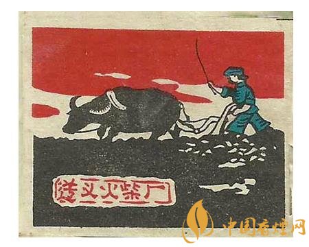 此后的50年代,地方國(guó)營(yíng)宜賓市火柴廠出品的“耕牛”(圖2)火花,突出了一名少數(shù)民族農(nóng)夫右手扶犁,左手拿著牛鞭驅(qū)趕牛兒加油翻耕農(nóng)田的場(chǎng)景。