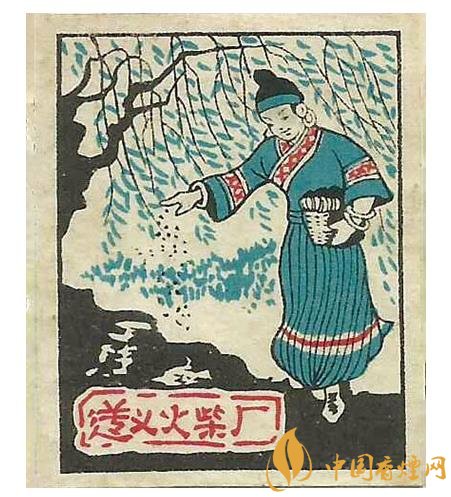 雖然綠色環(huán)保、高產(chǎn)高效的機(jī)耕受到人們的歡迎,不過(guò)由于條件制約還是偶有牛耕情形的。如遵義火柴廠出品于上世紀(jì)70年代的四枚套“春耕”火花,通過(guò)“水車車水灌溉”、“人工撒種”(圖7)等四幅畫面,簡(jiǎn)要描繪了貴州少數(shù)民族鄉(xiāng)民春耕備耕下種的全過(guò)程,其中“翻耕農(nóng)田”(圖8)一枚,畫面仍然是農(nóng)夫扶犁驅(qū)牛翻耕農(nóng)田,不忘初心,擼起袖子加油干的情景。