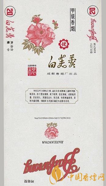 白芙蓉煙標(圖2)。芙蓉花一般在初冬開放,它朝開暮謝,早晨初開花時為白色,至中午為粉紅色,下午又逐漸呈紅色,至深紅色則閉合凋謝。白芙蓉有清熱解毒、消腫排膿的功效,可用于癰癤疔瘡、無名腫毒、燒傷燙傷、跌打損傷等癥。上世紀80年代,成都卷煙廠出品“白芙蓉”煙標,該煙標主版畫面白底上一朵碩大的粉紅色芙蓉花在綠葉的襯托下極其妍麗,旁邊伸展著三個蓓蕾,居中是金色的行書“白芙蓉”三字,下面是白芙蓉的知識介紹、歷史典故。副版畫面為一朵粉紅色的芙蓉花和芙蓉花三字紅色的拼音。