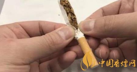 第二,拿出一根香煙,撕開取出里面的煙絲,只需要用到煙絲的這一部分;