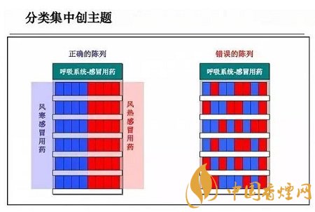 主題陳列是擴大陳列效果、增強顧客關注的較好辦法。基本陳列可以依據零售藥店自身商品分類的情況進行主題劃分,特殊陳列還可以增加更多感性的主題內容來提升陳列的效果。如圖所示: