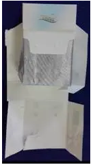 小盒透明紙材質(zhì)、包裝方式同條盒,拉帶頭為半橢圓形,位于正面左側(cè),順時針拉開。商標紙為白卡紙,膠粘劑類型為白乳膠,兩側(cè)點陣膠。