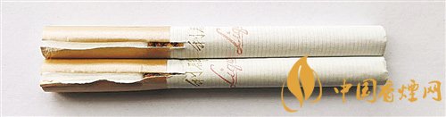 煙支差異對(duì)比:真煙煙支采用單一醋纖濾嘴,濾嘴長(zhǎng)度為25mm,卷煙紙上“liqun”字體筆畫較粗;假煙煙支過(guò)濾嘴長(zhǎng)度稍短約為24mm,卷煙紙上“liqun”字體筆畫較細(xì)。