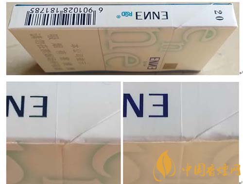 (4)真品卷煙“enne”小寫(xiě)字母筆畫(huà)立體感強(qiáng)。該款假冒卷煙小寫(xiě)字母筆畫(huà)無(wú)立體感。