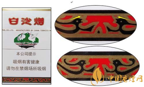 白沙(硬)因江南名泉式 ---“白沙古井”而得名,包裝以“白沙古井” 為背景,象征吉祥如意的雙鶴圖形為主體圖案。產(chǎn)品不斷應(yīng)用新技術(shù),科學(xué)配方,合理配香配料,口味特點:煙香濃馥、諧調(diào),余味純正舒適。現(xiàn)就該卷煙小盒鑒別方法介紹如下: