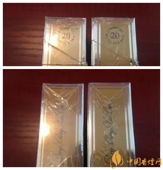冬蟲(chóng)夏草煙真假鑒別小盒頂部特征;左邊為正品,有裝飾花紋,而右邊的仿品不具備此特征。