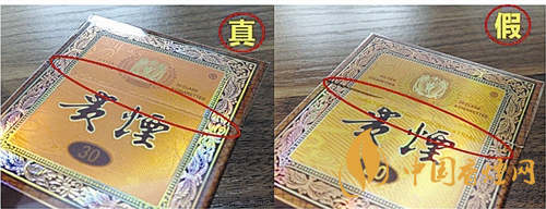 真品:側(cè)口拉條位于煙盒的右邊,非常整齊。